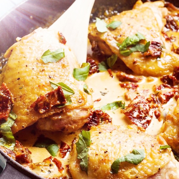 But I especially love this one-pot wonder. Once your chicken thighs are crisp, the sauce cooks right in the same pan. Everything cooks together so that the flavours all marry just right.