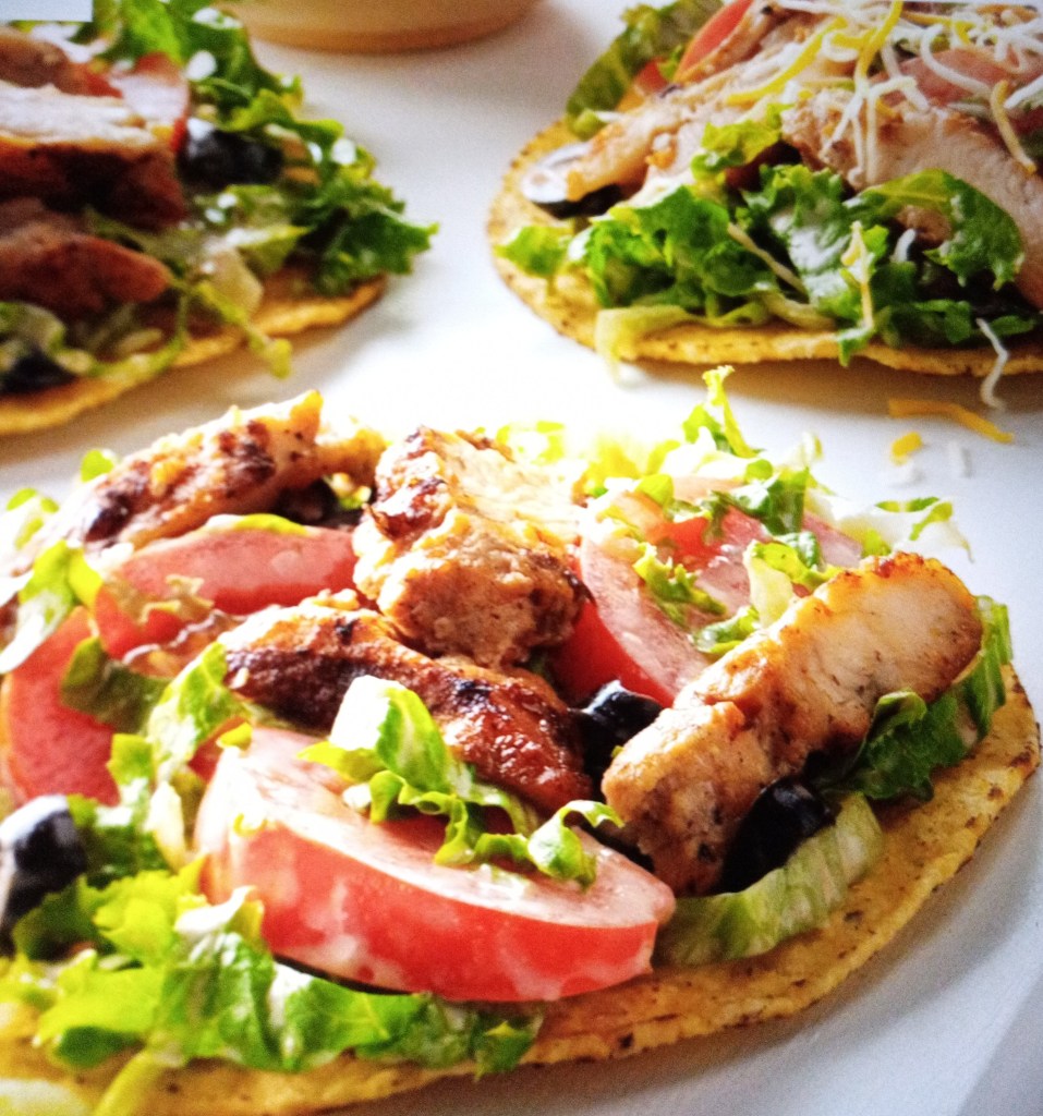 ~ in a large bowl, combine the first five ingredients. Arrange lettuce minute over tostada shells. Top with chicken and cheese.