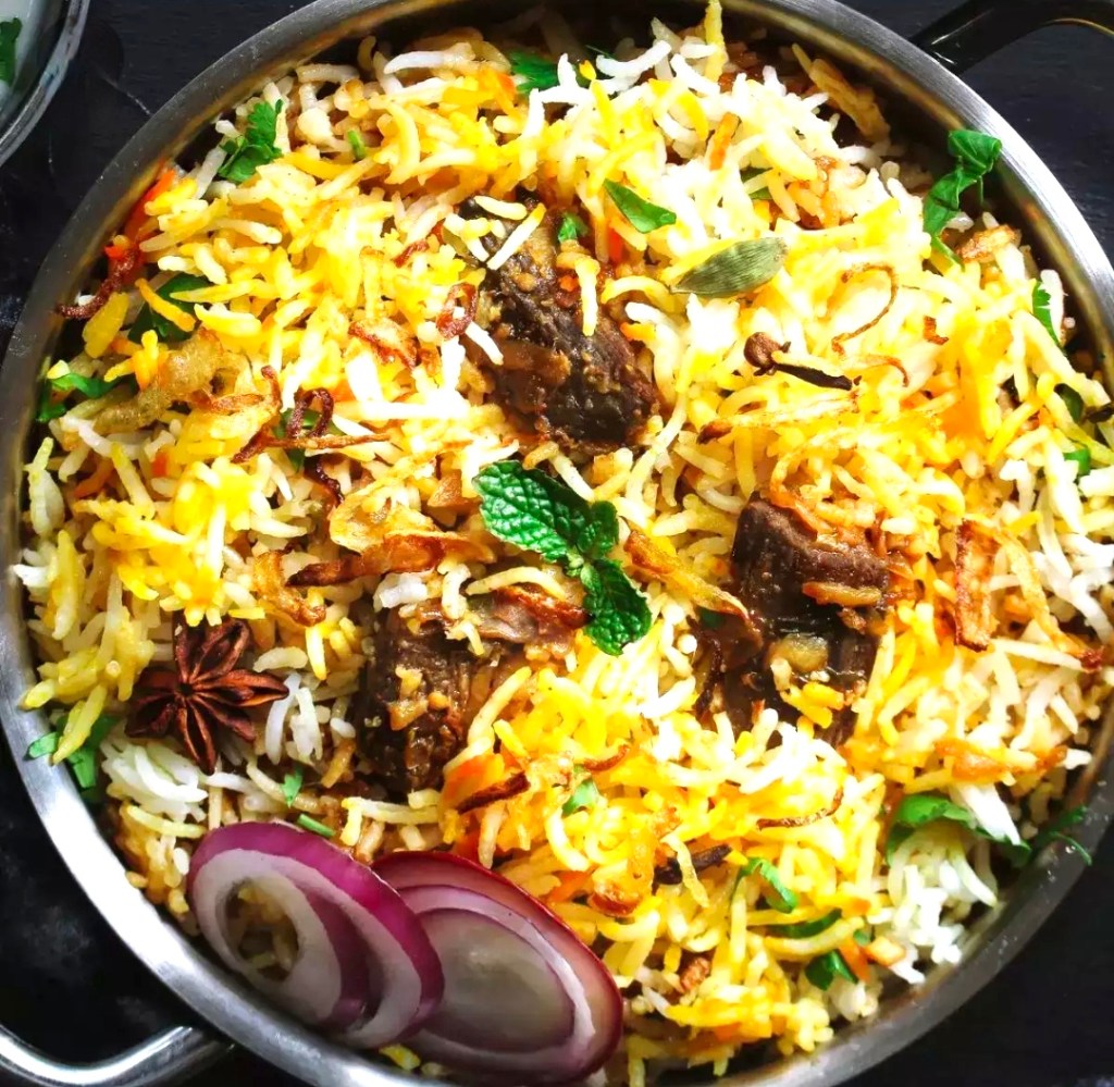 10. Once the biryani is done, gently fluff the rice with a fork, and serve hot with raita (yogurt-based dip) and salad.