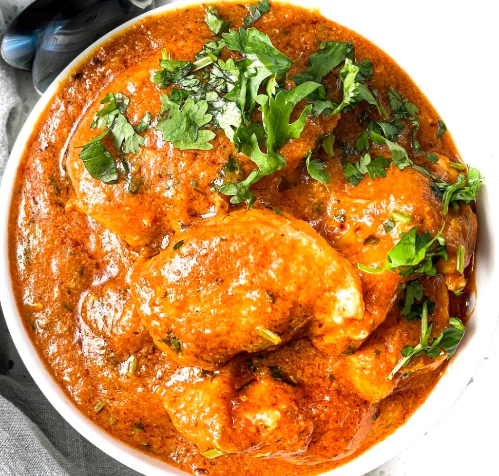 - Garnish with fresh cilantro and serve the chicken tikka masala hot with steamed rice or naan bread.
