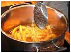 - Smaller pieces cook faster and more thoroughly. French fries work well because of their size. If your oil splatters when you drop food in, we’ve got tricks to clean up the grease from your kitchen surfaces1.