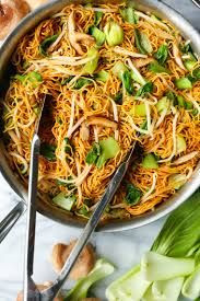 • Cook the lo mein noodles according to the package instructions. Drain and set aside.