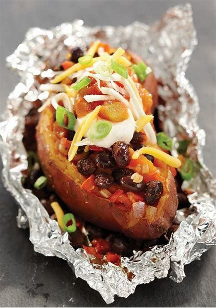 - Ingredients: Sweet potatoes, toppings (like black beans, avocado, salsa, and cheese).