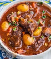 What’s the difference between braised meat and stewing recipes like beef stew? Braising uses just enough liquid to come halfway to three-quarters of the way up the meat. Stewing, on the other hand, submerges the food in liquid (like a soup). Stews also generally call for the meat to be cut into small, uniform-sized pieces, whereas braised meat can be left whole in its original roast form.