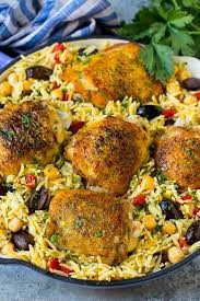 - Ingredients: Chicken thighs, orzo, onions, garlic, bell peppers, tomatoes, chicken broth, dried oregano, paprika, coriander, feta cheese (optional).