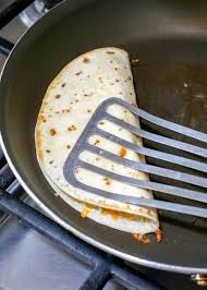 - Cook: Heat olive oil or butter in a skillet over medium heat. Place the quesadilla in the skillet and cook for 2-3 minutes on each side, until golden brown and cheese is melted.
