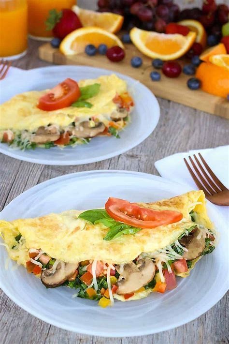 - Ingredients: Eggs, spinach, mushrooms, bell peppers, avocado.