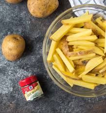 - Prep the Potatoes: Preheat your oven to 425°F (220°C). Scrub the potatoes clean (you can peel them, but leaving the skin on adds texture). Cut them into ¼ to ½-inch thick sticks.