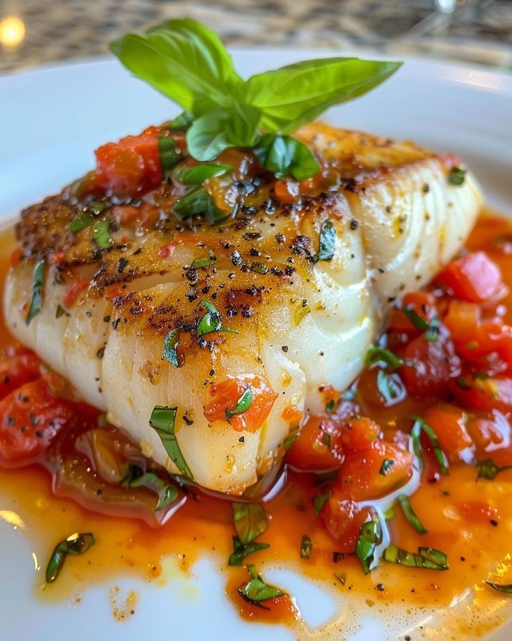 * – PAN ‑SEARED FISH WITH TOMATO ‑BASIL SAUCE