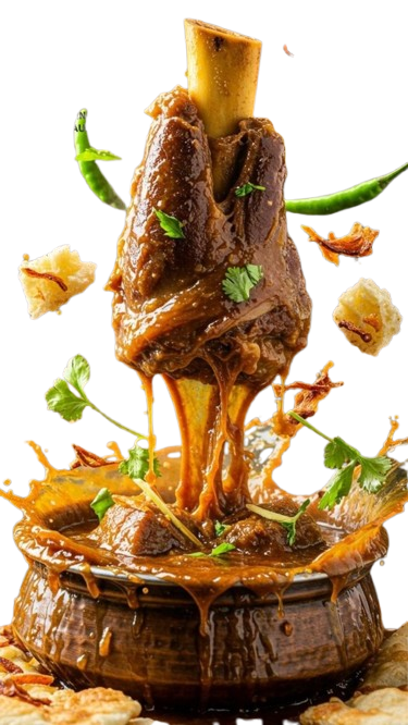 - Finish: Adjust seasoning, sprinkle chopped cilantro & sliced green chili on top. Serve the rich gravy with the shank over crispy potatoes or with chapati.