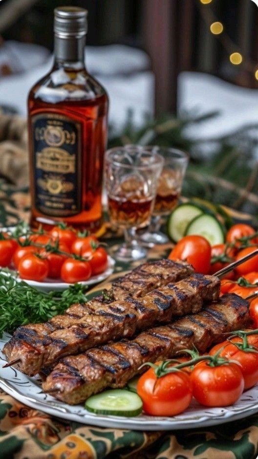 * – GRILLED MEAT SKEWERS ,( accompanied by a bottle of Whiskey ).